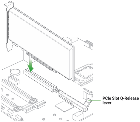 1: Press the PCIe slot Q-Release lever down until you hear a click