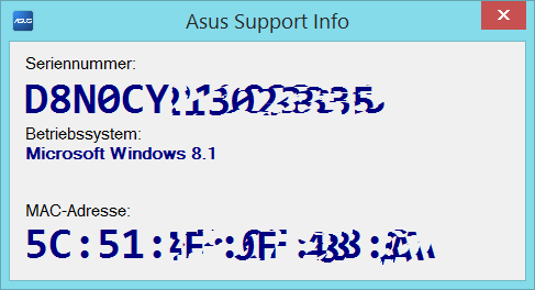 Pokud potřebujete zjistit sériové číslo notebooku ASUS a je možno spustit operační systém Windows, můžete využít následující program pro rychlé zjištění tohoto sériového čísla: