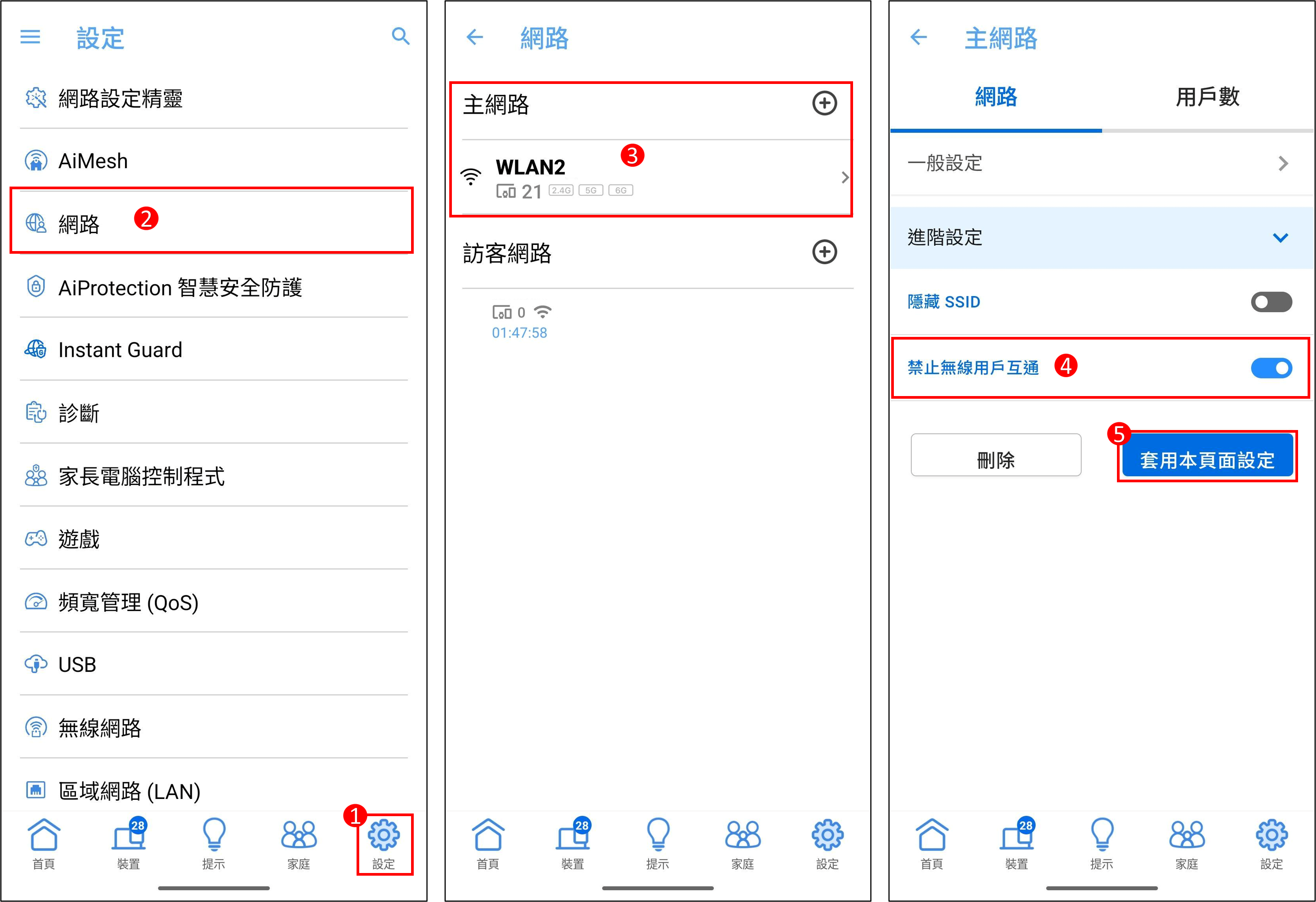 請參考下方說明進行設定定禁止無線用戶互通功能
