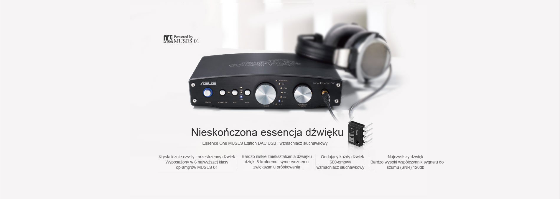 - Jakość dźwięku ze współczynnikiem SNR 124dB znana jest z rewolucyjnej i dobrze ocenianej karty Xonar Essence ST/STX
