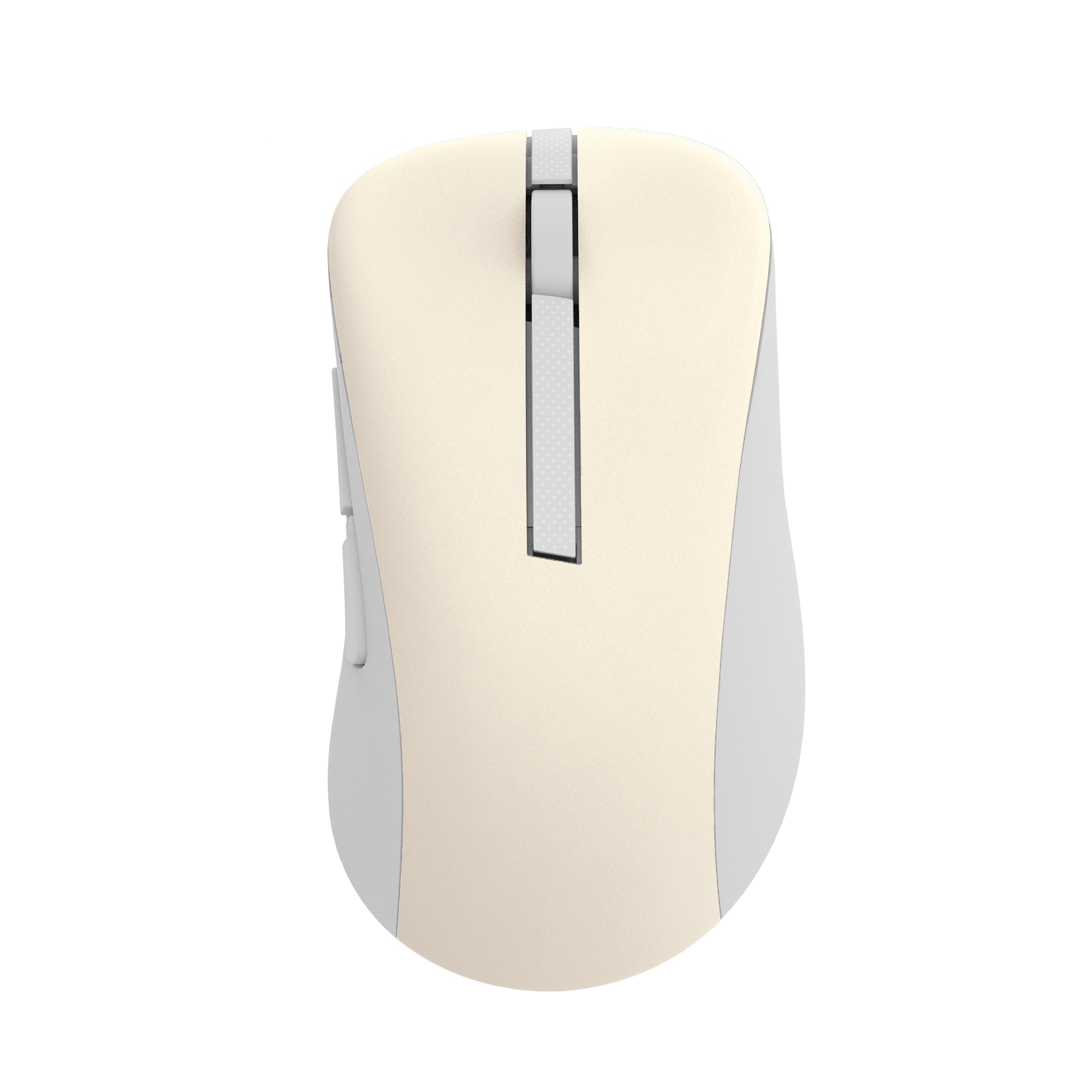 Myszka bezprzewodowa ASUS Wireless Mouse MD102 jest dostępna w wariantach wykończenia White, Dark Gray i Oat Milk i wyróżnia się neutralnym stylem, który doskonale wpasuje się w wystrój większości domów lub biur. Wzornictwo obejmuje delikatne odblaskowe akcenty wokół kółka przewijania, co dodaje jej elegancji.