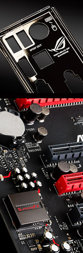 يعرف فريق ROG أهمية الصوت الخالي من العيوب- حيث تعمل التأثيرات الصوتية الأصلية والموسيقى التصويرية كاملة النطاق على خلق المتعة في اللعب. لهذا السبب نستثمر موارد هندسة كبيرة للحصول على صوت مثالي مدمج في اللوحة. وقد كانت نتيجة الاستثمار تكنولوجيا SupremeFX. وتعمل تكنولوجيات العزل المتطورة على تقليل التداخل الكهرومغناطيسي لأقل حد ممكن, في حين تقدم المكونات فائقة التميز الصوت الأفضل في هذه الفئة بروعة مماثلة لبطاقات الصوت المخصصة. لكننا لا نكتفي أبداً بما حققناه، وهذا هو السبب الذي دفعنا لإعادة ضبط تكنولوجيا SupremeFX 2014أكثر من ذلك لتناسب اللوحات الأم Crossblade Ranger. وهذا يعني مكونات أفضل بكثير وابتكارات برمجية رائعة الذكاء لتجارب ألعاب وتشغيل وسائط تتخطى مستوى المقارنة!