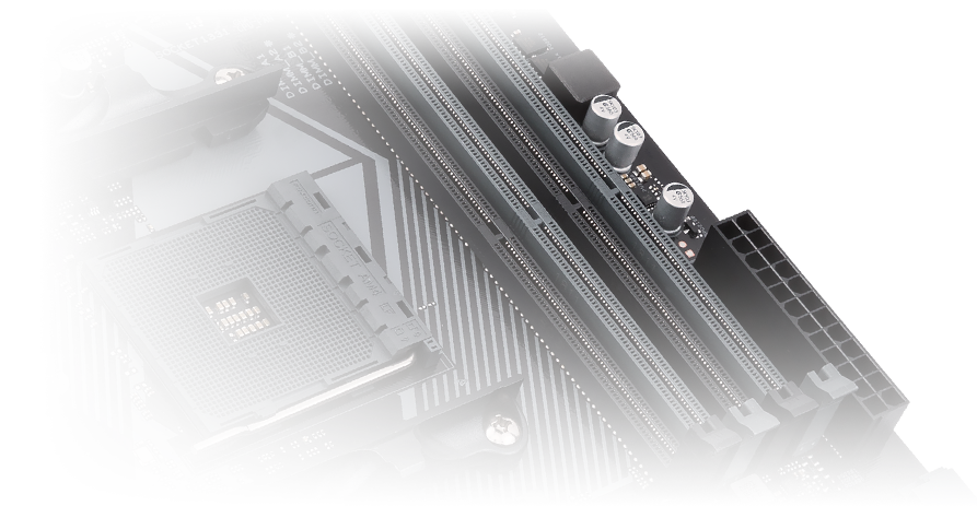 Our Prime B450 Series motherboards also have strengthened solder points around both the PCIe and DIMM pins.
