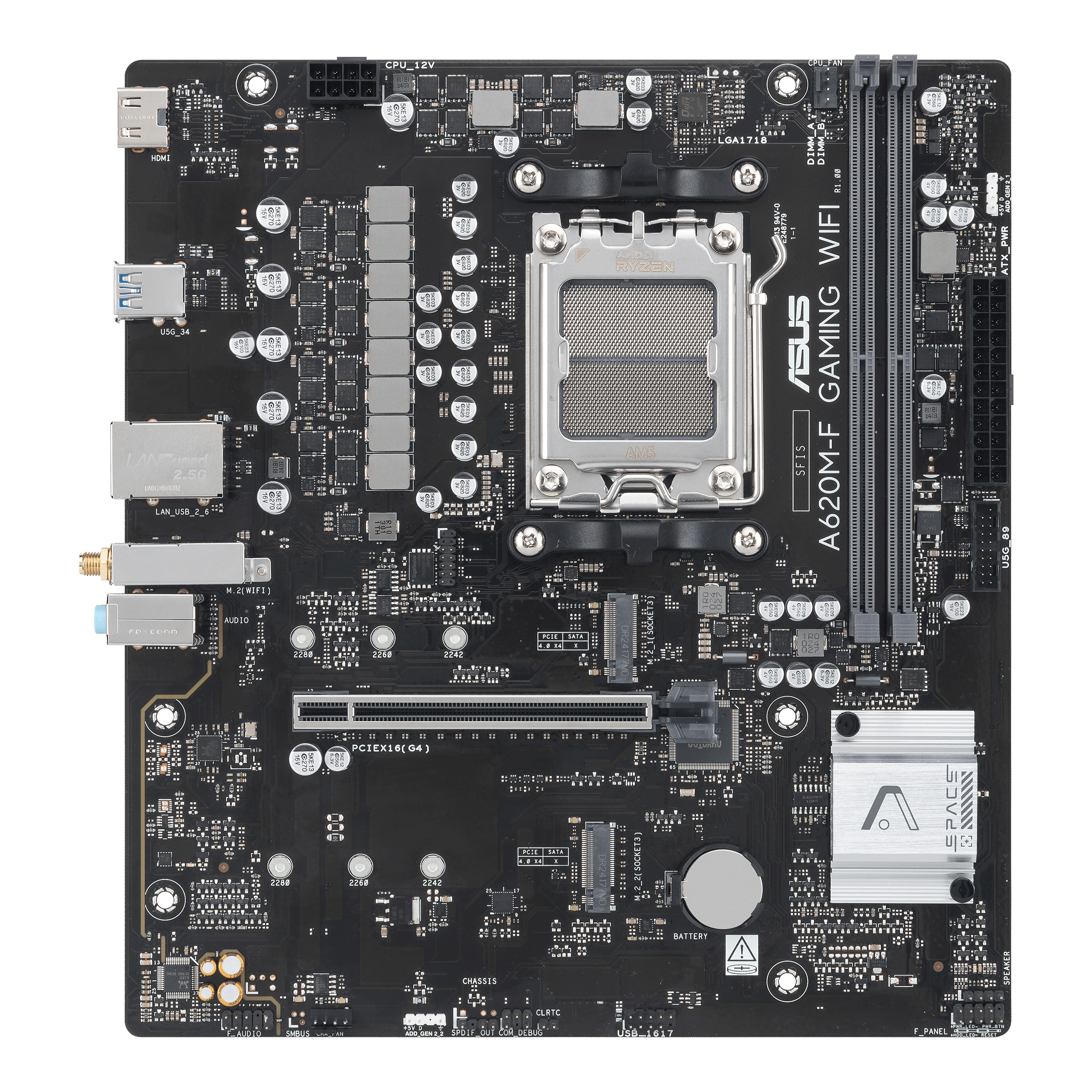 Rad základných dosiek ASUS A620 je odborne navrhnutý tak, aby naplno využil potenciál procesorov AMD Ryzen radu 7000. Doska A620M-F GAMING WIFI sa môže pochváliť robustným napájaním, komplexným riešením chladenia či možnosťami inteligentného ladenia. Používateľom a konštruktérom počítačov poskytuje celý rad optimalizácií výkonu prostredníctvom intuitívnych funkcií softvéru a firmvéru. Táto platforma poskytuje výkon a konektivitu, ktoré vyžadujú pokročilé AI PC aplikácie.