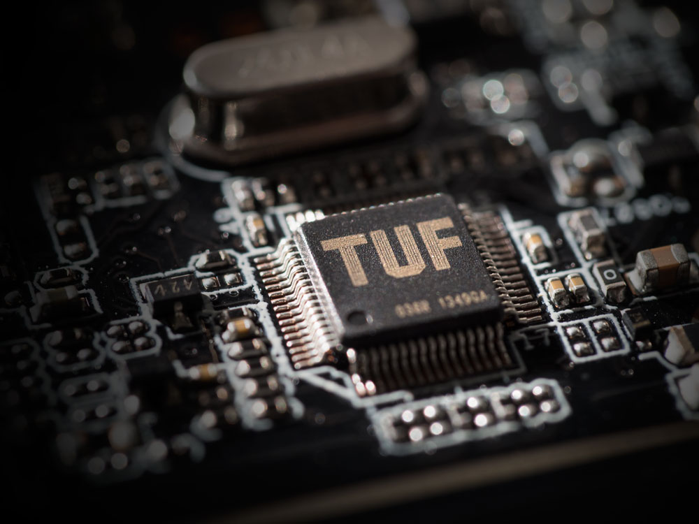 Redesigned TUF Alloy Chokes with 18.5% larger heat dissipation area join Japanese black metallic capacitors and military standard MOSFETs for unprecedented reliability.