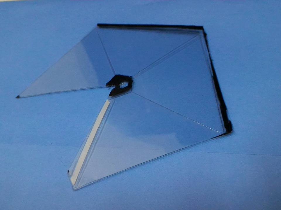 ▲ 先把透明板疊在正版浮空投影片之上,用奇異筆描邊,然後剪下來。剪的技巧是先剪一個大致的形狀,然後再用奇異筆把多出來的地方塗黑,再慢慢用剪刀修正。